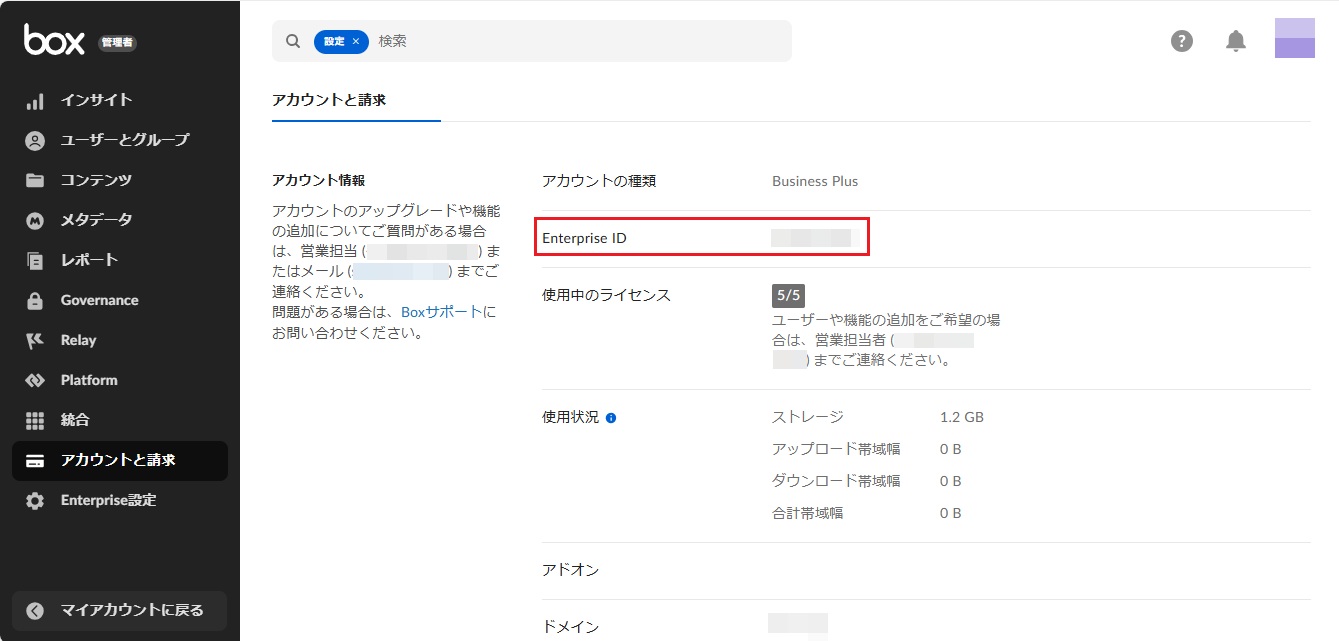 noteEnterprise IDの値はBox連携設定で使用しますのでメモしてください。