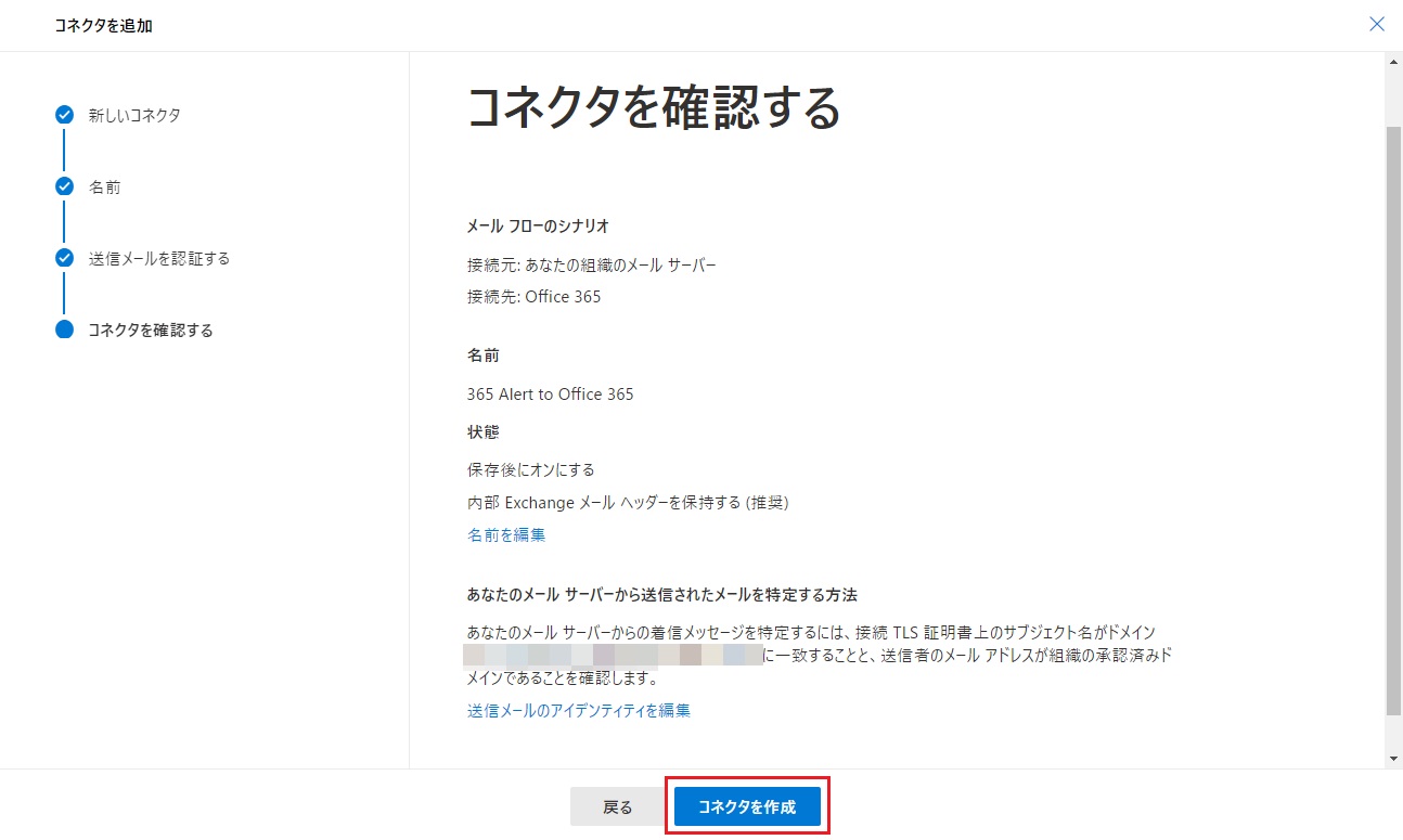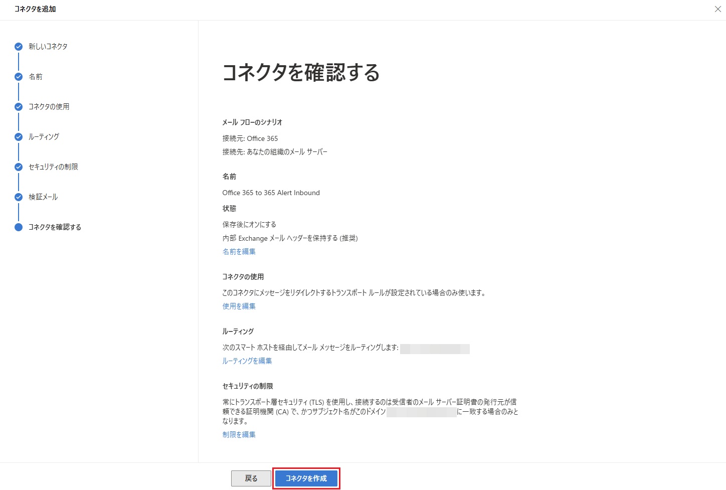 以上で、365 Alert (Inbound)コネクタの作成は完了です。