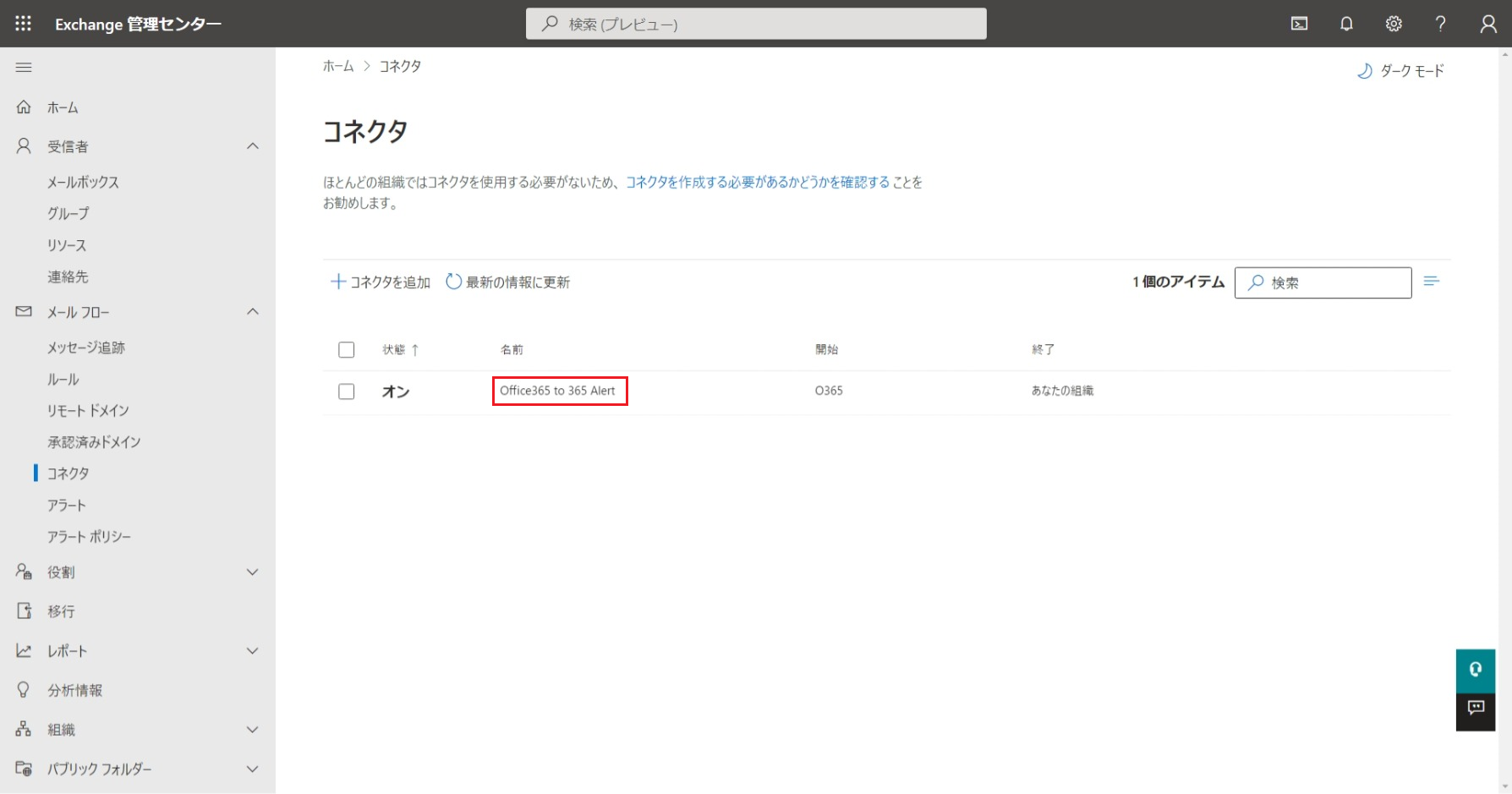 • 365 Alert (Inbound)コネクタはこちらの手順で作成した場合に削除してください。
