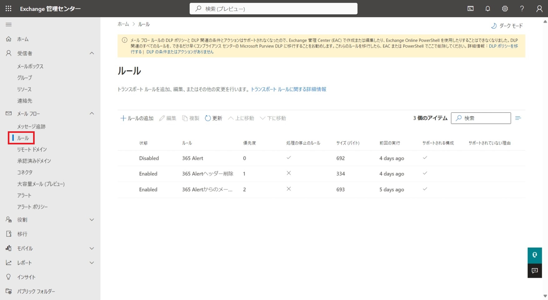 365 Alertサービスへの転送ルールの無効化・有効化手順