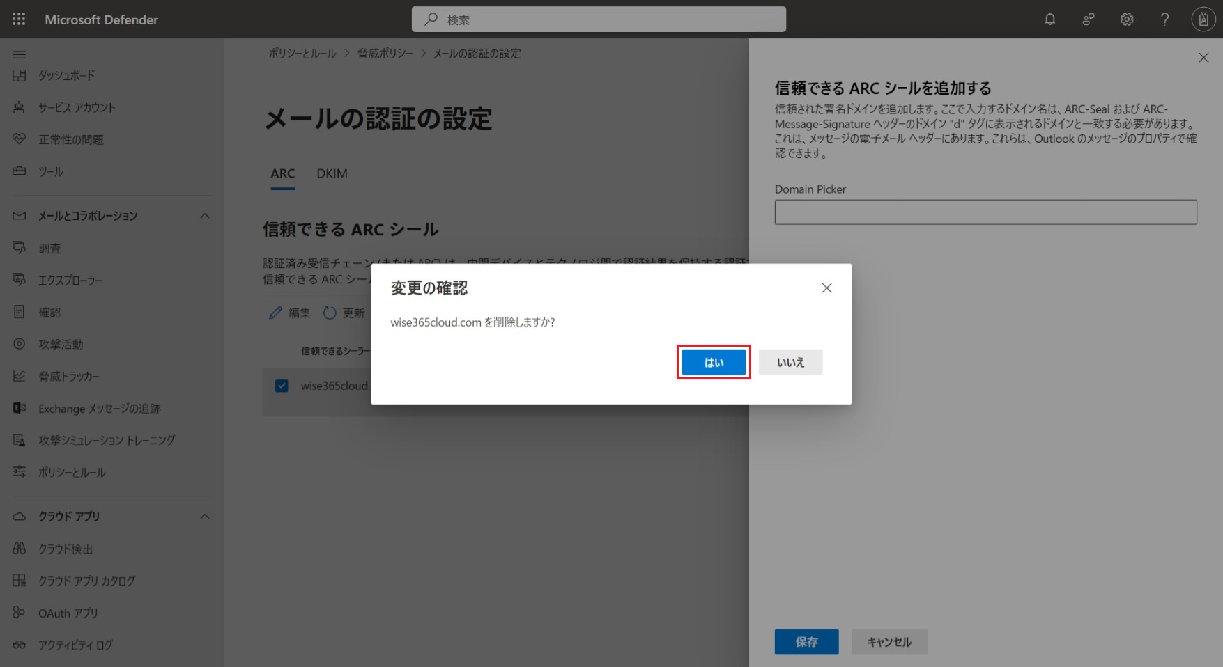 1.は365 Alertサーバーで既に有効化されていますので、以下では2.の信頼できるARCシーラーの追加手順を記載します。