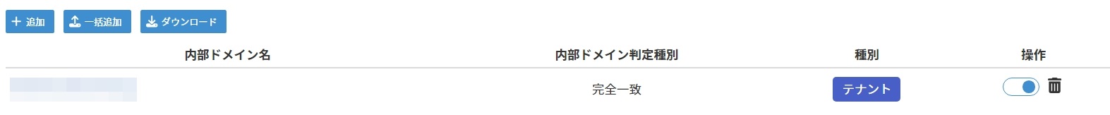 内部ドメイン一覧の[操作]列のトグルボタンの意味は以下の通りです。