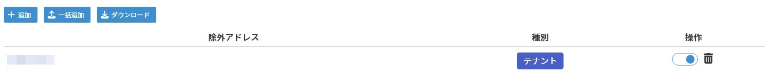 除外アドレス一覧の[操作]列のトグルボタンの意味は以下の通りです。