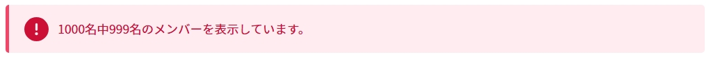 3. グループのメンバーは最大999名まで表示されます。メンバーが1000名以上のグループのメンバー表示時には上記画面の上部に以下の警告メッセージが表示されます。
