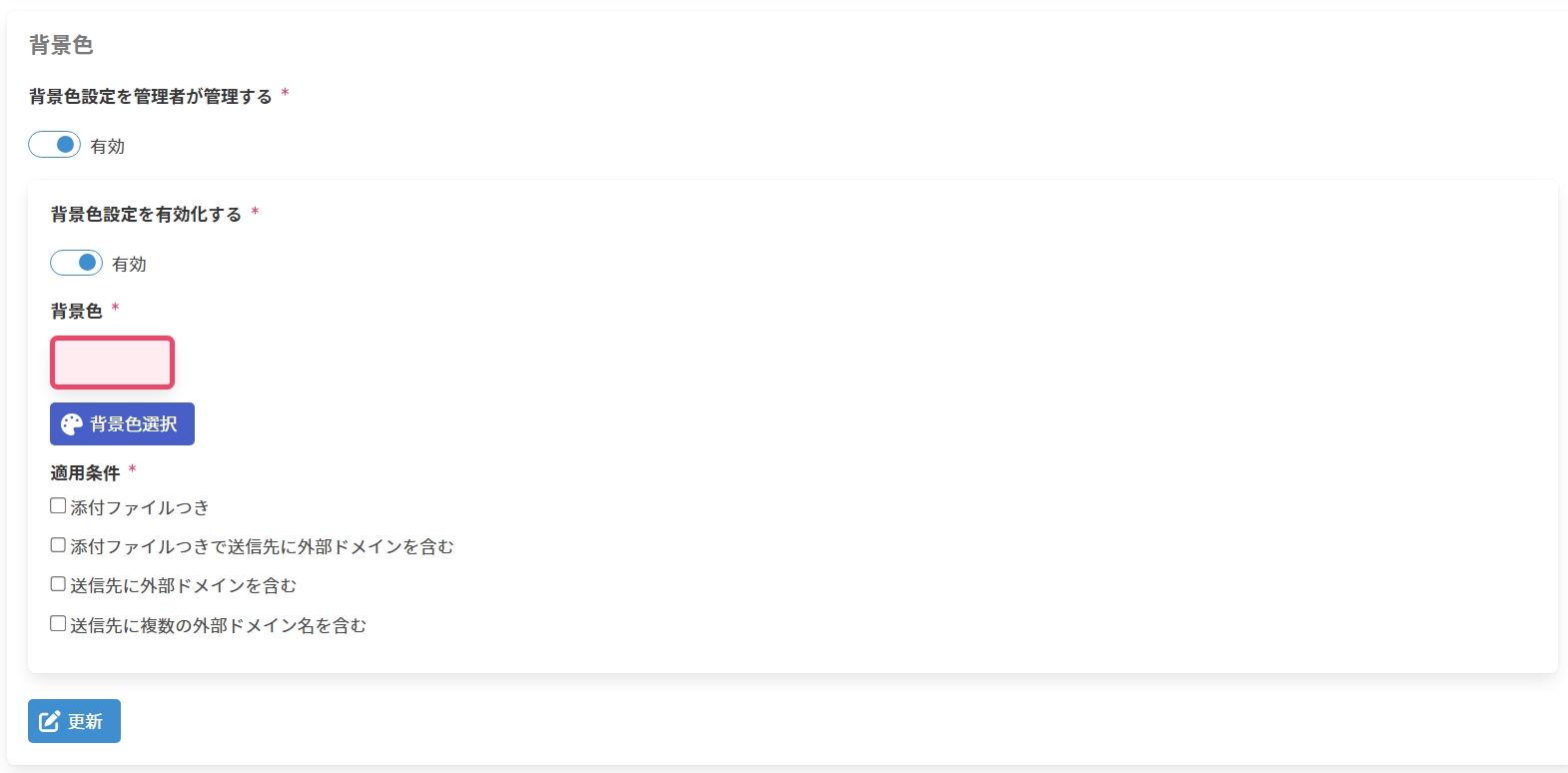 1. 以下の項目を入力し、[更新]をクリックして背景色設定を更新します。
