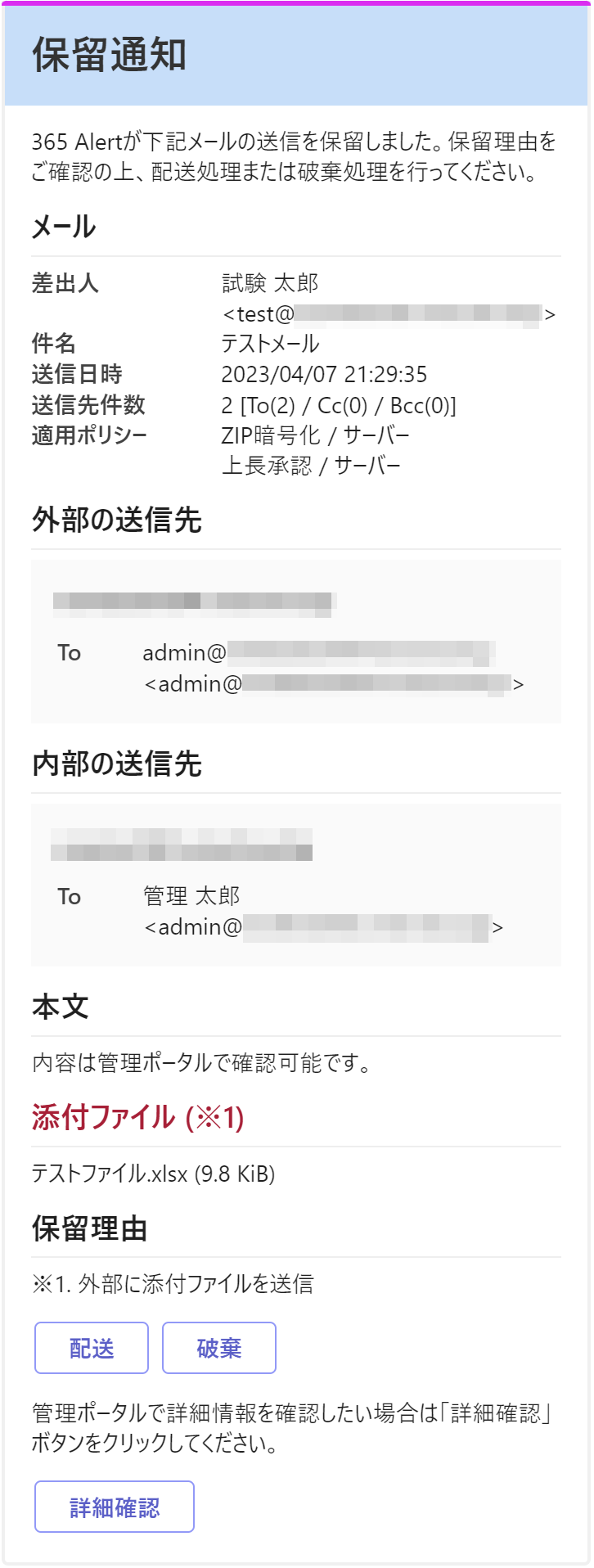 Teams上で宛先確認と配送・破棄処理等の操作が可能です。